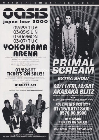 Note: Graphic and text on both sides of flyer, both sides shown. Reverse side promotes Oasis Japan Tour and Primal Scream Japan Tour.