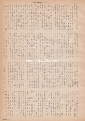 Brian Eno 1984/10 Japanese music press cutting clipping - article