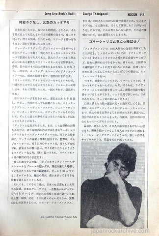 Note: Complete 2 page, 3 photo article. 2 separate pages. George Thorogood in Japan. Japanese text. Signed message from George is a reproduction (as published, part of page design) not handwritten over the page later.