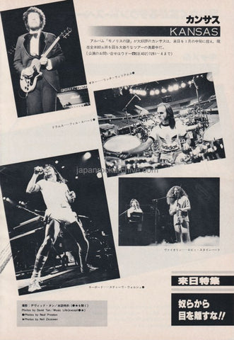 Kansas 1979/12 Japanese music press cutting clipping - 2 page photo spread / pinup - on stage