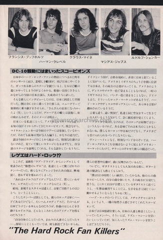 Note: Complete 2 page 6 photo article. 2 separate pages. Scorpions interviewed in Japan, pics exclusive to mag. Japanese text