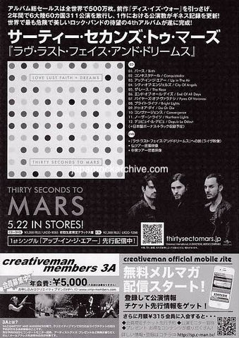 Thirty Seconds To Mars 2013 Japan tour concert gig flyer handbill