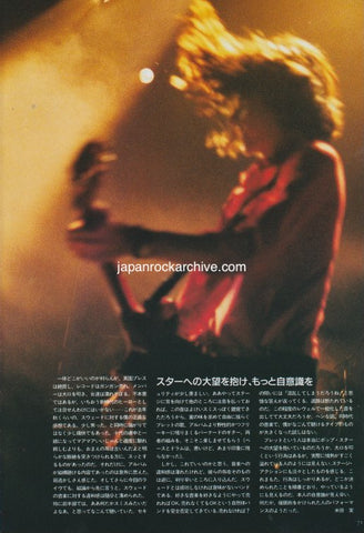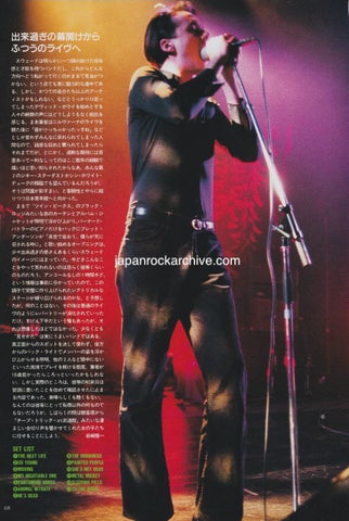 Note: Complete 5 page 5 pic photo feature (3 separate pages 5 sides). Japanese and English text. Live report with photos of Suede's first night of their first tour of Japan.
