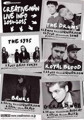 Reverse side promotes tour info of the following artists: The Drums / The 1975 / Banks / Royal Blood / Gerard Way